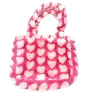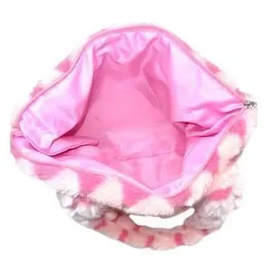 Hello Kitty Pink Faux-Fur Hearts Tote Bag, Large, Soft Plush Shoulder Purse