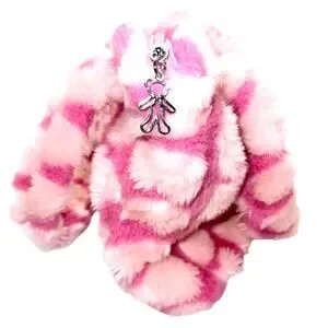 Fluffy, fun, and ready for bold style, this large faux-fur tote bag features a pink-and-peach heart pattern, soft plush texture, and the iconic Hello Kitty face on the front. Spacious enough for everyday use: roughly 21" from strap to bottom, 14.5" wide, and 12" deep on the inside. Interior includes one pocket (pocket shows minor scuffs). Exterior and fur are in excellent used condition with no bare spots or wear. Zippered tote and handles are sturdy. Ideal for casual wear, cosplay/“kawaii” outfits, or as a statement bag for shopping and travel.