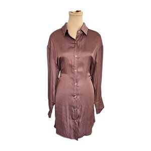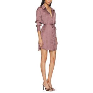 LBLC The Label Taylor Dress Satin Soft Mauve T-Shirt Wrap Dress Sz L