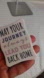 Decorative magnet with an inspirational quote. Features black, blue, and pink text on a white background.