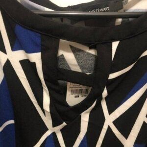 NWT Ashley Stewart Geometric Tunic Top - Black, Blue & White - Size 14/16