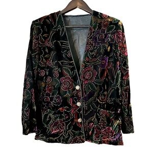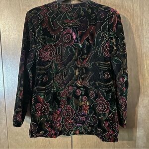 Vintage Floral Velvet Women’s Detail Button Blazer Pockets Lined Dark Academia 10.