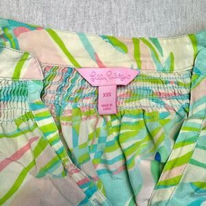 Lilly Pulitzer Women's Elsa 100% Silk Long Sleeve Shirt Green/Pink Sz XXS