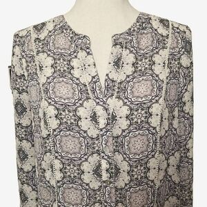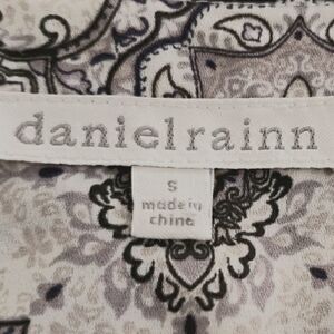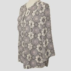 Daniel Rainn Toupe Patterned Split Neck Button Down 3/4 Sleeve Blouse Size S