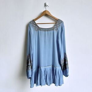 Free People Dress Wild One Embroidered Light Blue Size XS NWT
