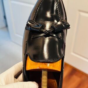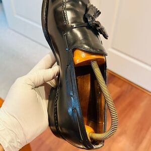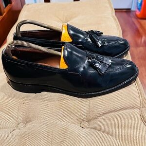 Elevate your style with these Allen Edmonds classic black tassel loafers. Perfect for any occasion, these shoes offer both comfort and sophistication and ready to ware with any casual outfit. Great condition, the left shoe has gash right shoe has a very small nick on the toe that blends in with shoe color These imperfections are hardly noticeable and a cobbler can easily fix this. Quality shoes and can hold a nice shine. L6C