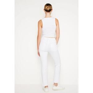 Good American Good Legs Straight Mid-Rise Jeans, Color White, Size 14