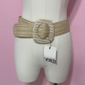 ZARA Beige Jute Woven Belt with Buckle