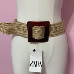 ZARA Tan Jute Weave Belt US 30