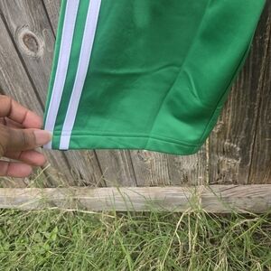 Bold green jacket with iconic white stripes. Features classic Adidas emblem.
