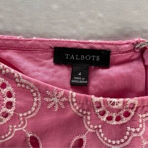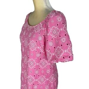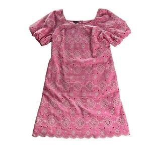 Talbots Pink Puff Sleeve Embroidered Eyelet Shift Dress 100% Cotton Size 4