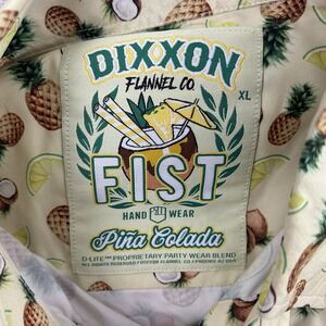 Dixxon Fist Mens XL Pina Colada Coconut Pineapple Lime Hawaiian Button Shirt. Condition is Pre-owned - Excellent. Shipped with USPS Ground Advantage.