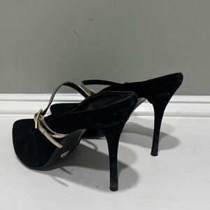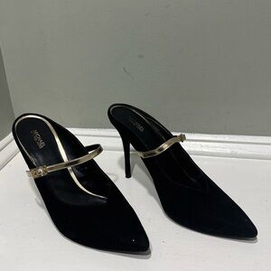 Michael Kors Black Suede Mule Heels with Gold Straps-size 11