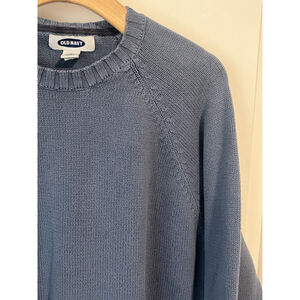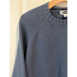 Old Navy Men's XL blue sweater in fantastic pre-owned condition. No issues or flaws. Features a classic round ribbed neckline and long sleeves, making it a versatile piece for casual, business, or travel occasions. Vintage-inspired.