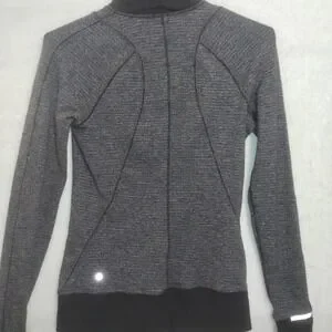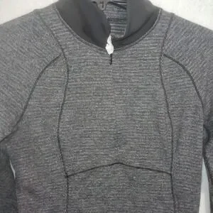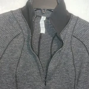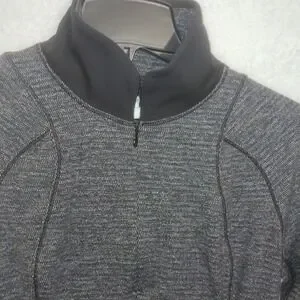 Lululemon 6 Base Runner 1/2 Zip Heathered Charcoal Gray Black Thumb Holes L-Slv