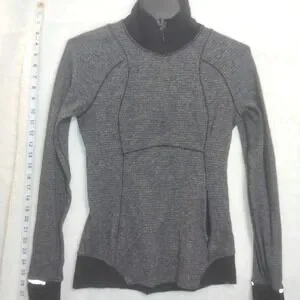 LULULEMON SZ 6 Base Runner 1/2 Zip Heathered Charcoal Gray Black Thumb Holes Long Sleeves