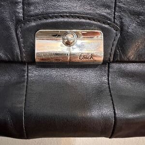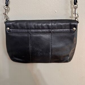 Cute little Coach black leather crossbody. In good condition some wear to the leather and staining on inside lining.
