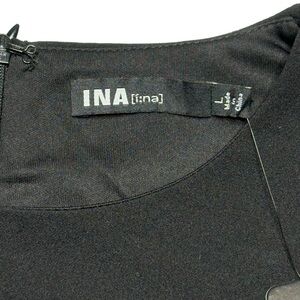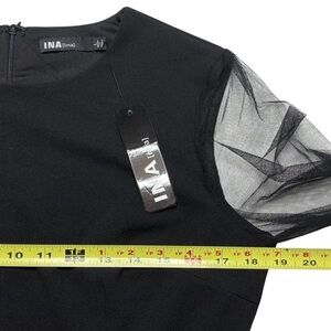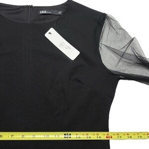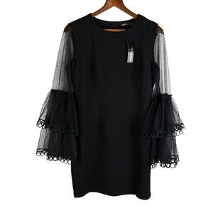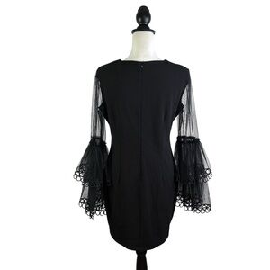Ina Black Cocktail Party Evening Dress Sheer Bell Sleeve Details Size L
