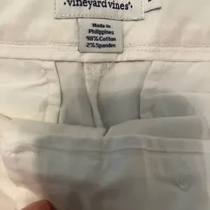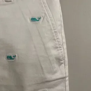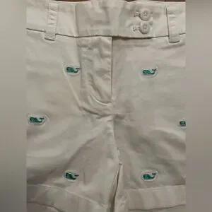 These white bermudas feature playful light blue whale designs that add a nautical touch to your summer style. Made from lightweight fabric, they are perfect for warm weather and offer a preppy, casual aesthetic. Great Spring and summer addition!