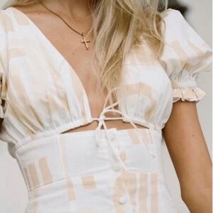 Dani Skirt Luca Frill Dress Yellow/Cream Front Tie Size Small in great condition!