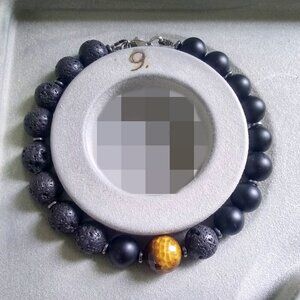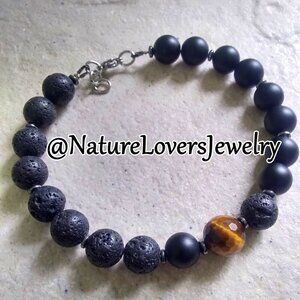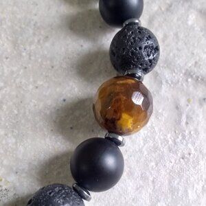 This rugged men’s bracelet—featuring Tiger's Eye, black Stone + Lava Rock beads separated by neat Hematite slices — has that effortless, rustic and masculine vibe. Tough yet stylish, it’s built for guys who like to keep it real. Whether he's out on an adventure or just kicking back, this piece adds the perfect edge. Made for a sexy, big man - fits 8.5-9" wrist sizes.