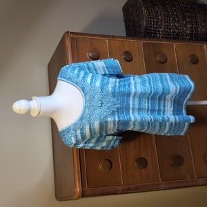 erika BLUE Tie Dye Stripe COASTAL Burnout Lace Bling Tshirt