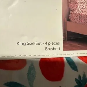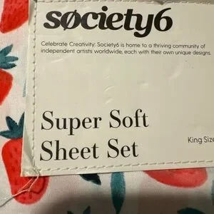 🍓NEW Society Six Strawberry Print King Size Super Soft Sheet Set NIP 4 Piece
