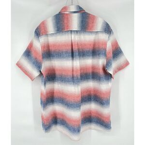 Johnnie-O Classic Fit Donnie Striped Linen Blend Shirt S/S Malibu Red Blue Size Medium