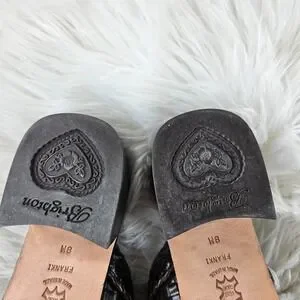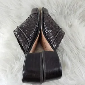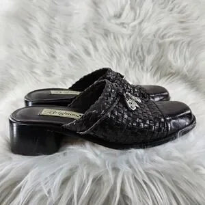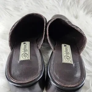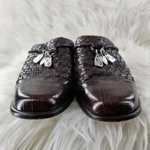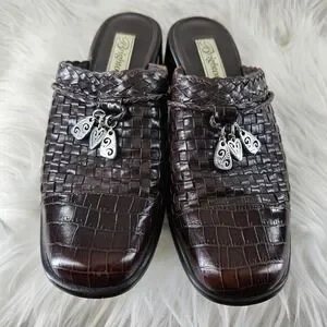 Brighton Franki Mules Womens 8 Brown Leather Croc Alligator Embossed Woven Charm