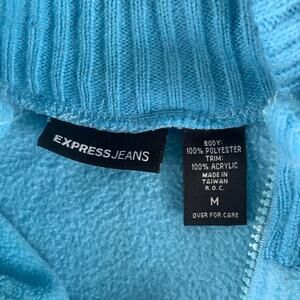 Y2K Express Jeans Aqua Fleece Rib Knit Zip Up Sweater Jacket Women’s M