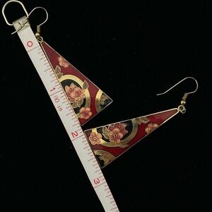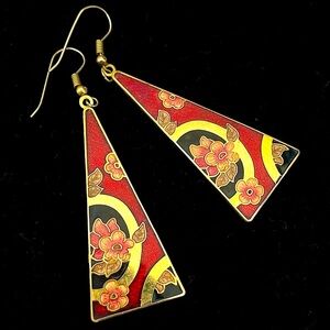 Vintage 80's Cloisonné Red and Gold Triangle Earrings
