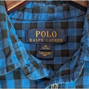 Polo Ralph Lauren Size Medium Plaid Shirt Boys Blue Check Top Button 10-12 LS RL