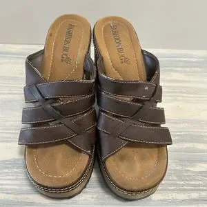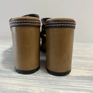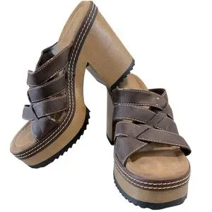 Vintage Chunky heel slide on brown Y2K 1990’s platform sandals by fashion bug
