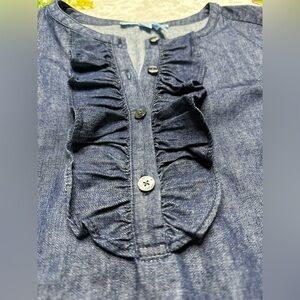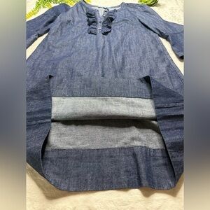 Draper James Chambray Ruffle 3/4 Bell Sleeve 100% Cotton Shift Dress Womens 6