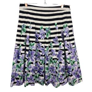 Talbots Striped Floral Pleated Midi Skirt. Size 10. Side zip. 98% cotton, 2% spandex. *please see last pics. Small, Faint spots in a couple of places on the skirt.