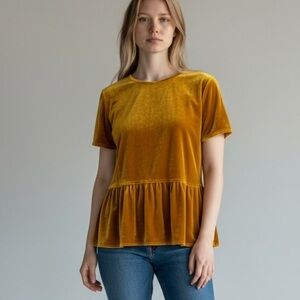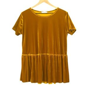 Entro Velour Boho Short Sleeve Peplum Pullover Top Golden Brown Size Medium