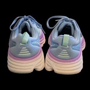 In Excellent condition, Hoka One Women's Bondi 8 Running shoes Green/Blue/Purple, Size 11 D wide.