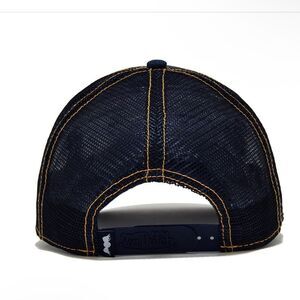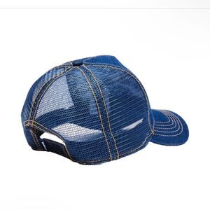 The Navy Stone Denim Snapback Trucker Hat by Von Dutch.