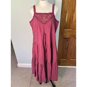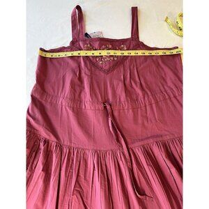 The NWT April Cornell Sundress in size LG is a stylish and versatile piece perfect for various occasions such as travel, parties, or casual wear. The pink floral pattern, square neckline, and sleeveless design give it a feminine and bohemian look. Made of lightweight woven fabric, this midi-length dress features tiered layers and embroidered accents, making it ideal for summer, fall, and spring seasons. With a pullover closure and machine washable care instructions, this sundress is a comfortable and easy-to-maintain addition to any wardrobe.