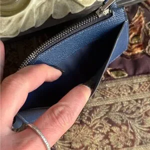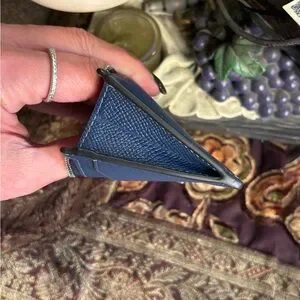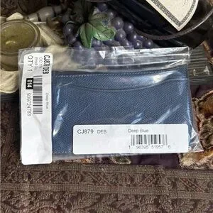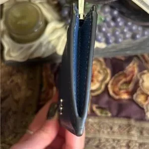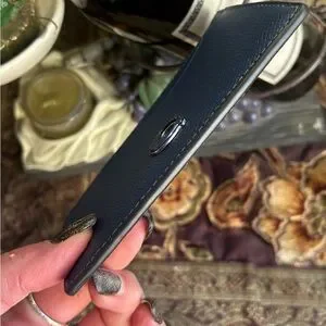 Stylish blue leather card holder with a sleek design. Features a prominent 'C' logo on the front.