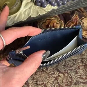 Authentic COACH 1941 calf leather zip top card holder with key hinge.