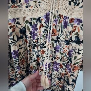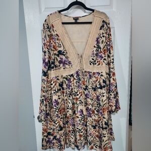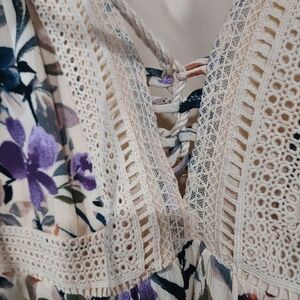 Torrid Ivory Floral Mini Gauze Lace-Up Skater Dress in Size 2 / 18-20