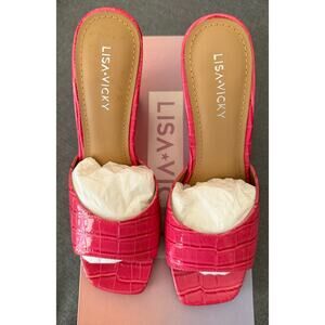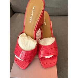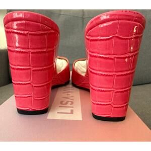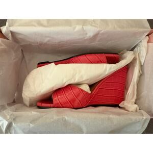 NEW Lisa Vicky Nordstrom Adore-V Croco Wedge Sandals Black Patent Leather 7