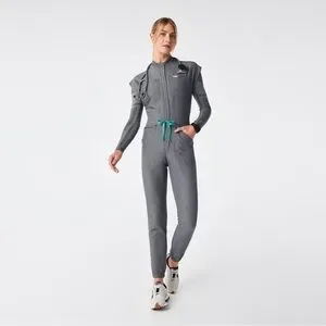 Casual and convenient. The FIONx™ Rafaela ScrubJumpsuit™ features nine pockets, a high rise waistband and gathered elastic cuffs for the best all-in-one option.