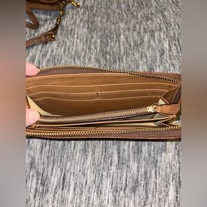 Frye DEMI Leather Zip Around Wallet Whiskey Distressed Western Bohemian
