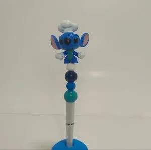 Custom-made Stitch pen. Features a Stitch character focal wearing chefs hat on a white pen base.