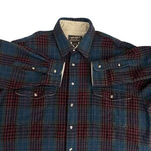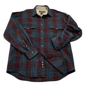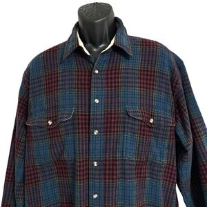 Eddie Bauer Men's XL Wool Vtg 90's Plaid Shirt Red Green Multi Outdoor