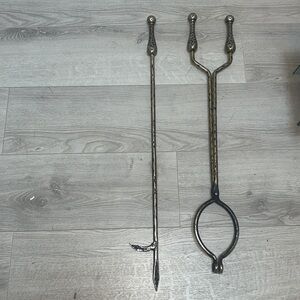 Vintage Adams Company Iowa Goldtone and Black Fireplace Tool Set