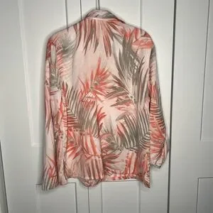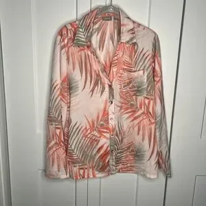 Chico's Tropical Leaf Print Roll Tab Button Down Top