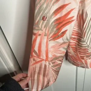 FINAL SALE Chico's Tropical Leaf Print Roll Tab Button Down Top Shirt Large 2